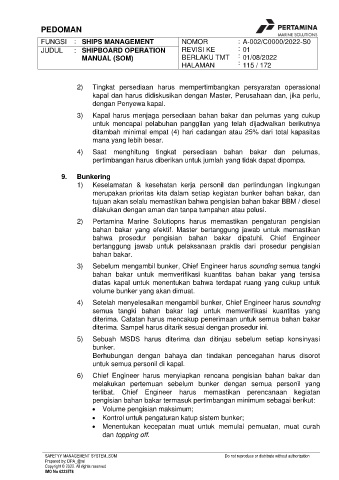 2) Pertamina Marine Solutiopns harus memastikan pengaturan pengisian
