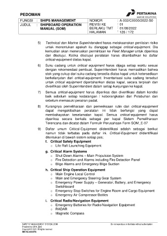 membahayakan keselamatan kapal. Semua critical-equipment harus