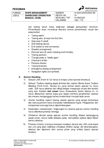 5) STebelum dimulai setiap operasi anchor handling, Master bertanggung