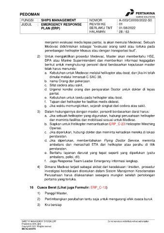 2) Untuk mengaktifkan prosedur Medevac, Master akan memberitahu HSE,