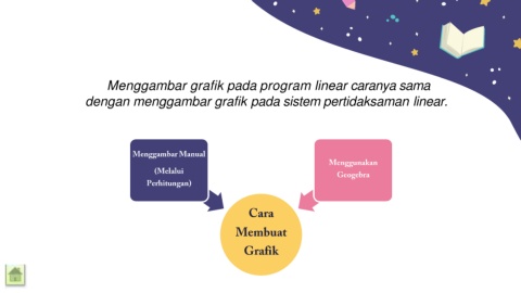 Menggambar grafik pada program linear caranya sama dengan menggambar grafik pada sistem pertidaksaman linear.