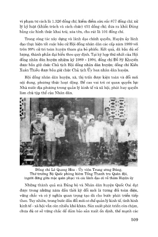 (ngöôøi ñöùng giöõa maëc quaân phuïc) vaø caùc laõnh ñaïo cuõ veà thaêm Huyeän uûy