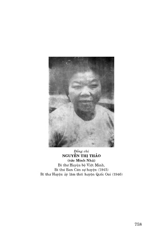 Ñoàng chí NGUYEÃN THÒ THAÛO (tức Minh Nhã) Bí thö Huyeän boä Vieät Minh, Bí thö Ban Caùn söï huyeän (1945) Bí thö Huyeän uûy laâm thôøi huyeän Quoác Oai (1946) 758