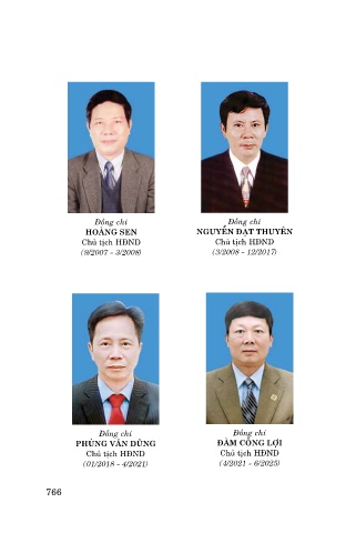Ñoàng chí Ñoàng chí HOÀNG SEN NGUYỄN ĐẠT THUYÊN Chuû tòch HÑND Chuû tòch HÑND (9/2007 - 3/2008) (3/2008 - 12/2017) Ñoàng chí Ñoàng chí PHÙNG VĂN DŨNG ĐÀM CÔNG LỢI Chuû tòch HÑND Chuû tòch HÑND (01/2018 - 4/2021) (4/2021 - 6/2025) 766