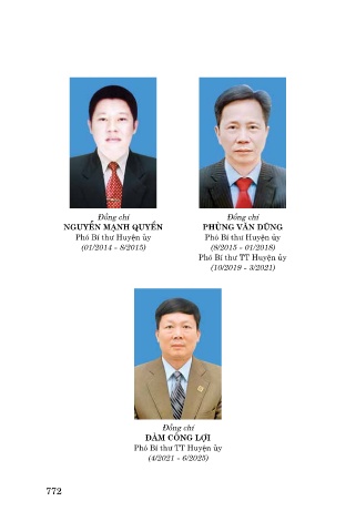 Đồng chí Đồng chí NGUYỄN MẠNH QUYỀN PHÙNG VĂN DŨNG Phó Bí thư Huyện ủy Phó Bí thư Huyện ủy (01/2014 - 8/2015) (8/2015 - 01/2018) Phó Bí thư TT Huyện ủy (10/2019 - 3/2021) Đồng chí ĐÀM CÔNG LỢI Phó Bí thư TT Huyện ủy (4/2021 - 6/2025) 772