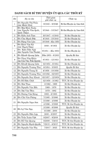 DANH SÁCH BÍ THƯ HUYỆN ỦY QUA CÁC THỜI KỲ