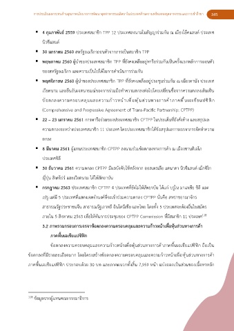 ▪ พฤษภาคม 2560 ผู้น าของประเทศสมาชิก TPP ที่ยังคงเหลืออยู่หารือร่วมกันเป็นครั้งแรกหลักการถอนตัว