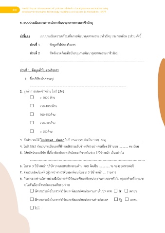 ข. แบบประเมินสถานการณ์การพัฒนาอุตสาหกรรมยาชีววัตถุ