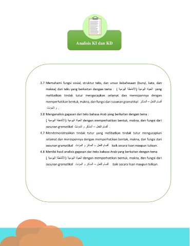 3.8 Menganalisis gagasan dari teks bahasa Arab yang berkaitan dengan tema :