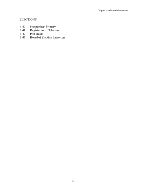 Chapter 1 – General Government ELECTIONS 1.40 Nonpartisan Primary 1.41 Registration of Electors 1.42 Poll Hours 1.43 Board of Election Inspectors 2
