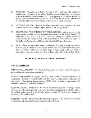 of the sewer utility for the ensuing year. Upon approval of the Village Board, the