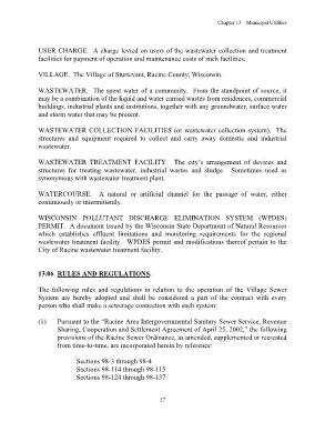 provisions of the Racine Sewer Ordinance, as amended, supplemented or recreated