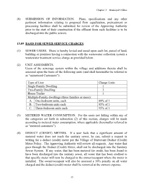 writing for a deduct (credit) meter per the Village of Sturtevant Deduct (Credit)