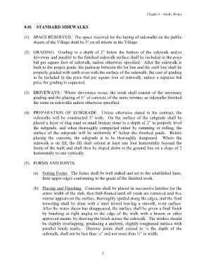 sidewalks will be constructed 5’ wide. On the surface of the subgrade shall be
