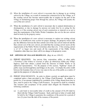 Village in maintaining proper flow through the culvert, the Village will assume the