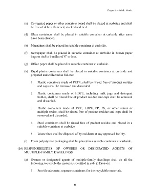 (h) Rigid plastic containers shall be placed in suitable container at curbside and
