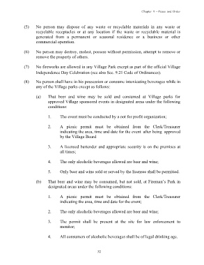 (7) No fireworks are allowed in any Village Park except as part of the official Village