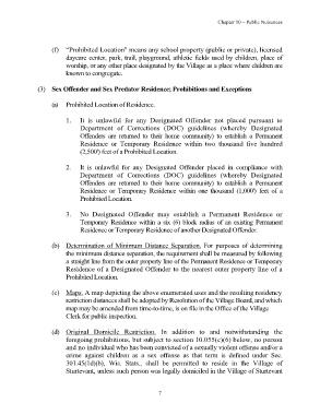 restriction distances shall be adopted by Resolution of the Village Board, and which