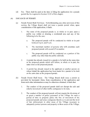 (b) Parade Permit Shall Issue. The Village Board shall issue a permit as