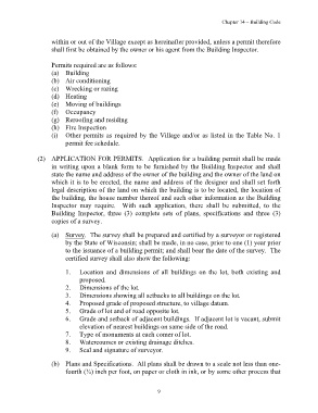 (i) Other permits as required by the Village and/or as listed in the Table No. 1