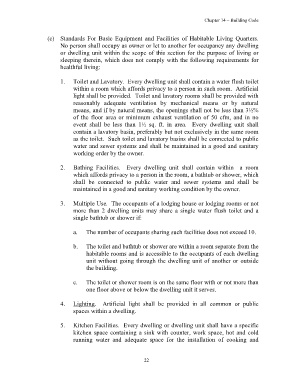 (c) Standards For Basic Equipment and Facilities of Habitable Living Quarters.