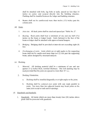 2. Bearing. Deck joists shall bear a minimum of one and one half (1½)