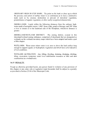 shoreland/wetland zoning ordinance, comprised of shorelands that are designated as