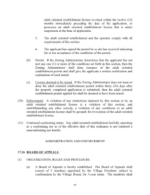 (11) Continued conforming status. Any adult oriented establishment lawfully operating
