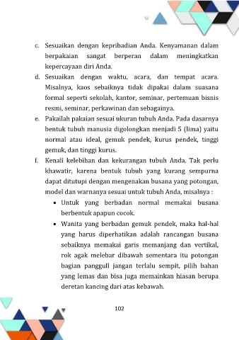 e. Pakailah pakaian sesuai ukuran tubuh Anda. Pada dasarnya