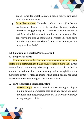g. Cara Bersahabat: Persoalan belum tuntas jika belum