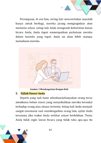 Perempuan, di sisi lain, sering kali menceritakan masalah