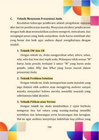 Hal ini agar audiens menyetujui kelebihan tiap pilihan yang