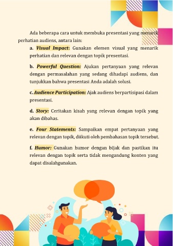 Ada beberapa cara untuk membuka presentasi yang menarik