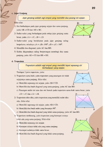 d) Memiliki dua buah diagonal yang tidak sama panjang.
