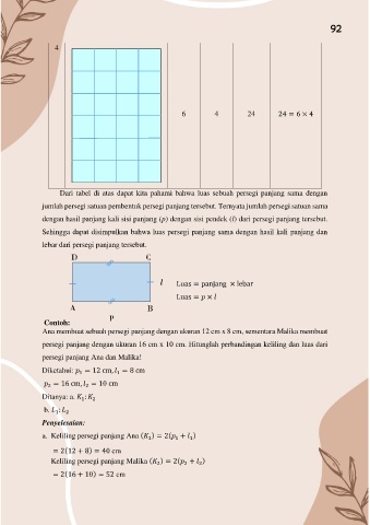 Sehingga dapat disimpulkan bahwa luas persegi panjang sama dengan hasil kali panjang dan