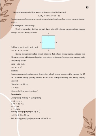 Maka perbandingan keliling persegi panjang Ana dan Malika adalah