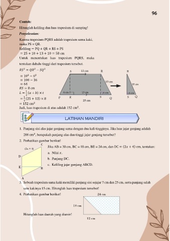 3. Sebuah trapesium sama kaki memiliki panjang sisi sejajar 7 cm dan 25 cm, serta panjang salah