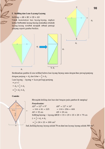 16 cm Keliling layang − layang ABCD = 15 + 20 + 15 + 20 = 70 cm