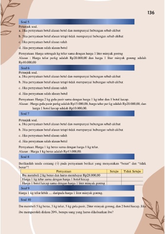 Pernyataan: Harga setengah kg telur sama dengan harga 1 liter minyak goreng