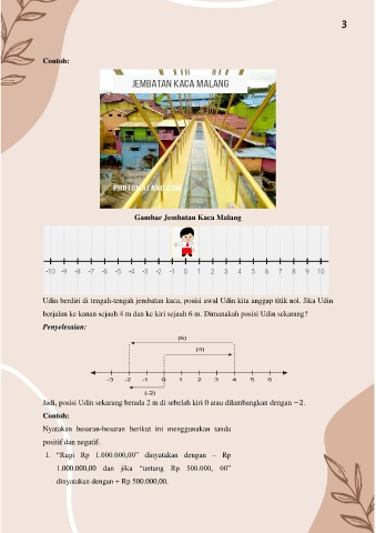 Jadi, posisi Udin sekarang berada 2 m di sebelah kiri 0 atau dilambangkan dengan −2.