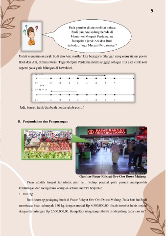 Untuk menentukan jarak Budi dan Ani, marilah kita buat garis bilangan yang menyatakan posisi