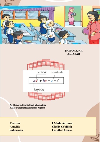 20 BAHAN AJAR ALJABAR A. Aljabar dalam Kalimat Matematika B. Menyederhanakan Bentuk Aljabar Yerizon I Made Arnawa Arnellis Cholis Sa’dijah Suherman Lathiful Anwar