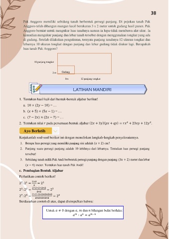 3. Sebidang tanah milik Pak Andi berbentuk persegi panjang dengan panjang (3 + 2) meter dan lebar