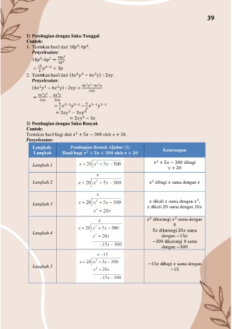 Langkah- Pembagian Bentuk Aljabar (1) Keterangan