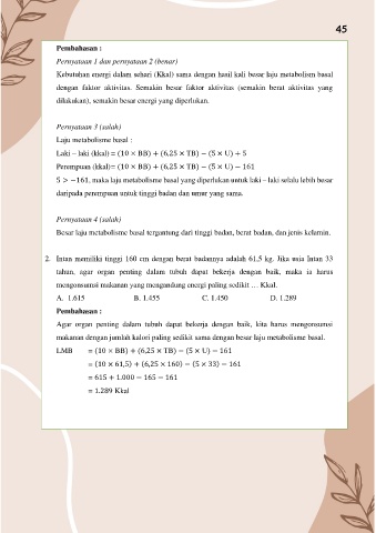 2. Intan memiliki tinggi 160 cm dengan berat badannya adalah 61,5 kg. Jika usia Intan 33
