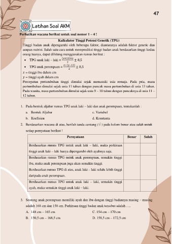 3. Seorang anak perempuan memiliki ayah dan ibu dengan tinggi badannya masing – masing