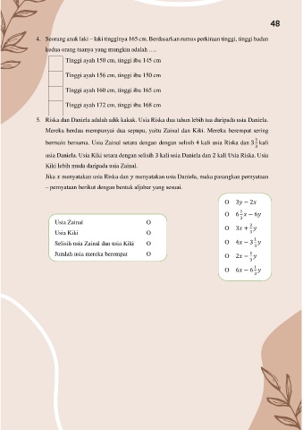5. Riska dan Daniela adalah adik kakak. Usia Riska dua tahun lebih tua daripada usia Daniela.