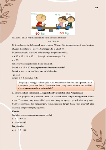 Bentuk + 25 = 60 disebut persamaan linear satu variabel.