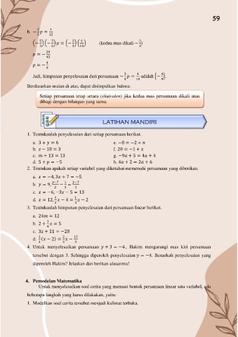 4. Untuk menyelesaikan persamaan + 3 = −4 , Hakim mengurangi ruas kiri persamaan