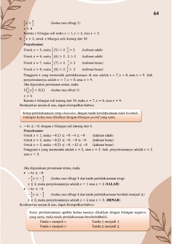 Untuk = 1, maka −4(1) ≤ −8. −4 ≤ −8 (kalimat salah)